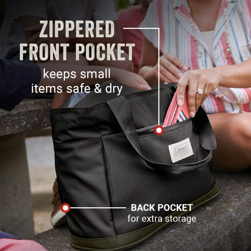 Day at the beach, picnic in the park, or a tailgate with the crew? The Coleman® Outlander™ 20-Can Soft Cooler Tote is designed to reflect the Coleman heritage and quality you want for getting outside. Food and drinks stay cold for up to 24 hours so you’ll have your favorite snacks and beverages close by while soaking up the sun at the beach or catching up with friends at the tailgate. Padded handles make carrying the cooler from the trunk to the picnic table easy. The zippered front pocket keeps your phone, keys, or wallet secure and durable water-resistant polyester means your items stay dry and a back pocket holds larger items like a magazine or sunscreen. The antimicrobial leakproof liner helps prevent odor, mildew, and mold from forming so you’ll feel confident using this cooler again and again.