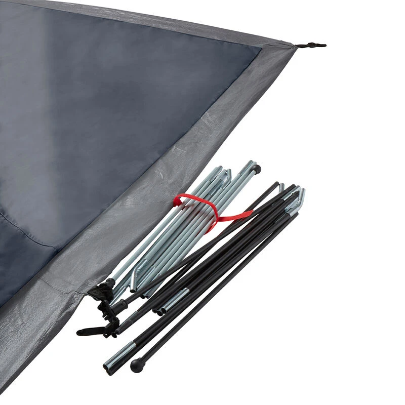 - Sets up in 5 minutes with preattached poles