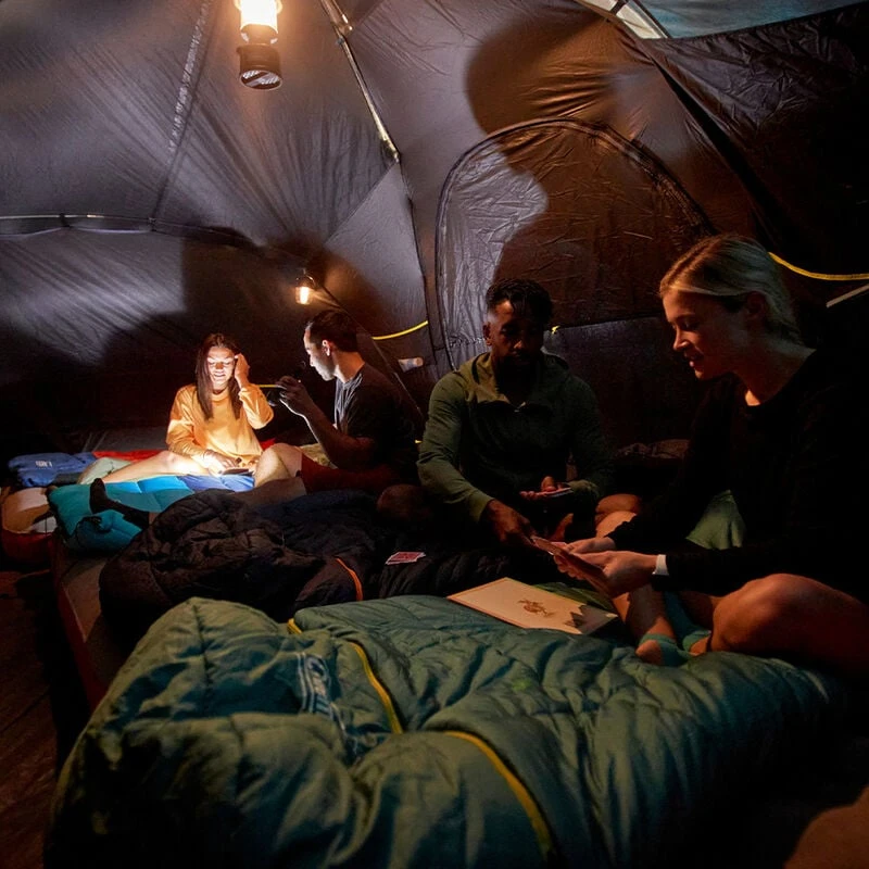 • WeatherTec system’s tub-like floor, welded corners, waterproof fabric, inverted seams, and taped seams on rainfly and tent body help keep water from getting in
