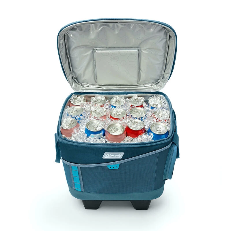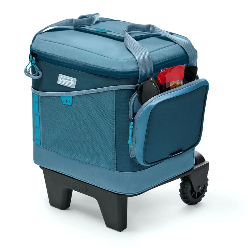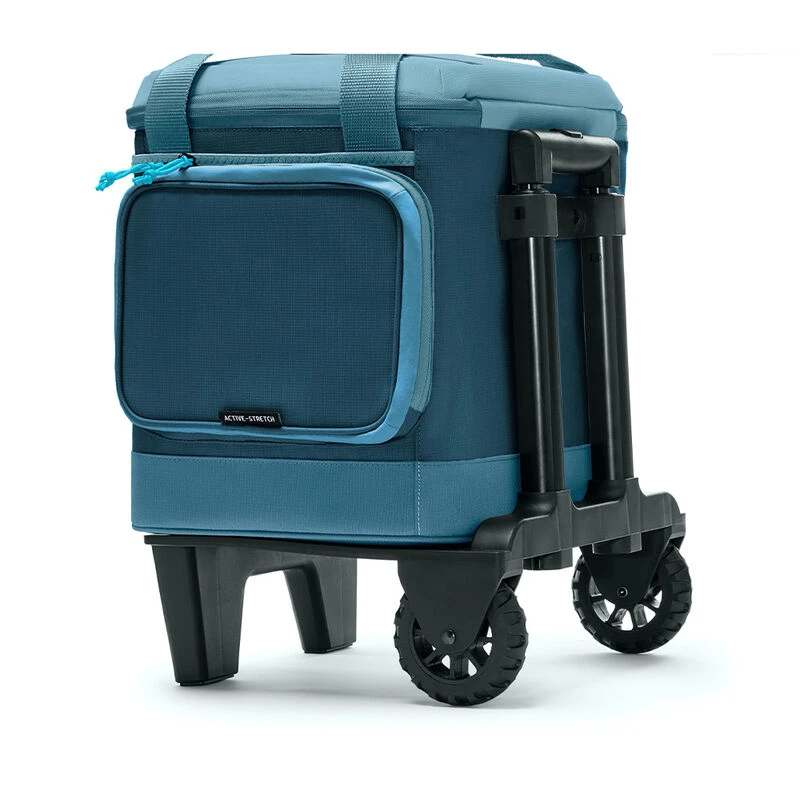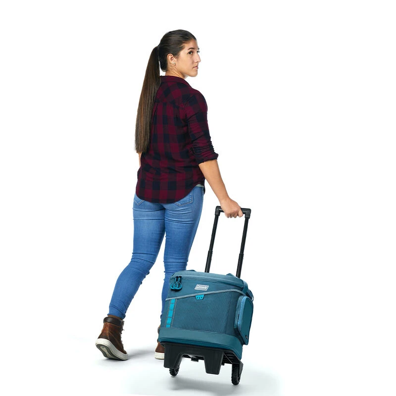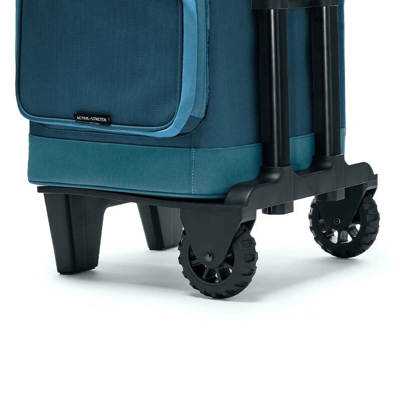 • Heavy-duty wheels, telescoping locking handle for easy pulling across rough terrai
